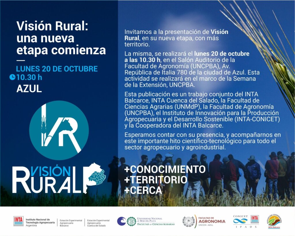 Presentación Revista Visión Rural El próximo Lunes 20 de octubre a las 10.30 hs, en el Salón Auditorio de la Facultad de Agronomía UNICEN, se llevará a cabo…