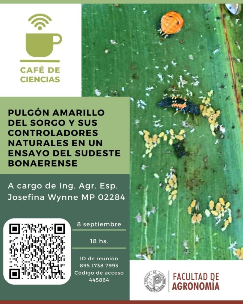 Nueva edición virtual de Café de Ciencias Organizada por el ciclo virtual Café de Ciencias, el jueves 8 de septiembre, se llevará a cabo la charla “Pulgón Amarillo del Sorgo y…