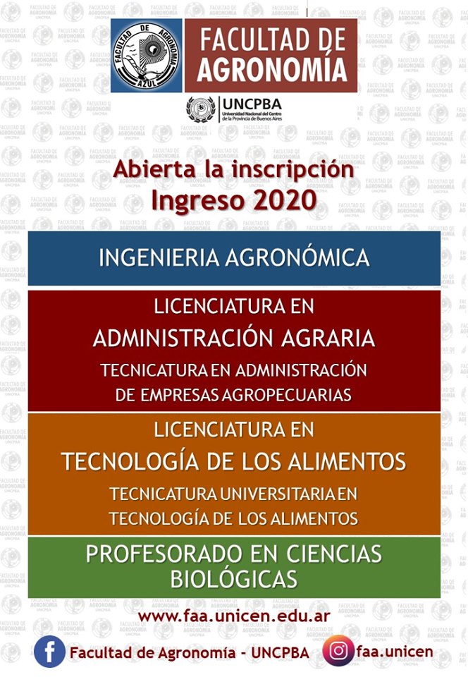 Inscripción abierta El 1 de octubre comienza la inscripción 2020 a todas las carreras de grado de la Facultad de Agronomía UNCPBA. La oferta académica consta…