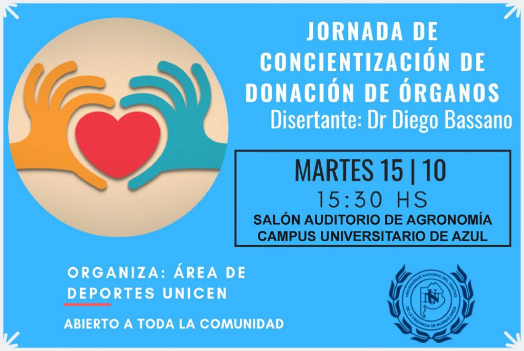 Jornada de Concientización de Donación de órganos El Área de Deportes UNICEN invita a toda la comunidad académica de la Sede Azul y comunidad en general a la Jornada de Concientización…