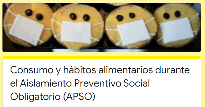 Encuesta: Consumo y hábitos alimentarios durante el Aislamiento Preventivo Social Obligatorio (APSO) Compartimos con ustedes una encuesta que están llevando a cabo desde el Espacio Azul Saludable de la Facultad de Agronomía de Azul (UNCPBA) con…