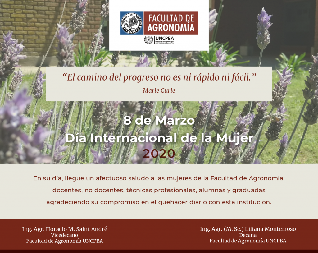 Día Internacional de la Mujer En su día, llegue un afectuoso saludo a las mujeres de la Facultad de Agronomía: docentes, nodocentes, técnicas profesionales, alumnas y graduadas, agradeciendo su…
