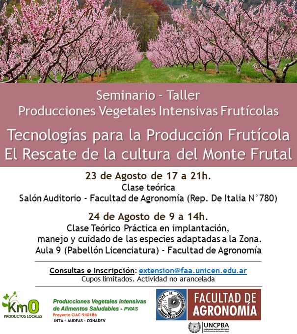 Tecnologías para la Producción Frutícola, El Rescate de la Cultura del Monte Frutal. Seminario-Taller Producciones Vegetales Intensivas Frutihortícolas 23 de Agosto de 17 a 21h. Clase teórica. Salón Auditorio – Facultad de Agronomía. 24 de Agosto de 9 a 14h. Clase Teórico…