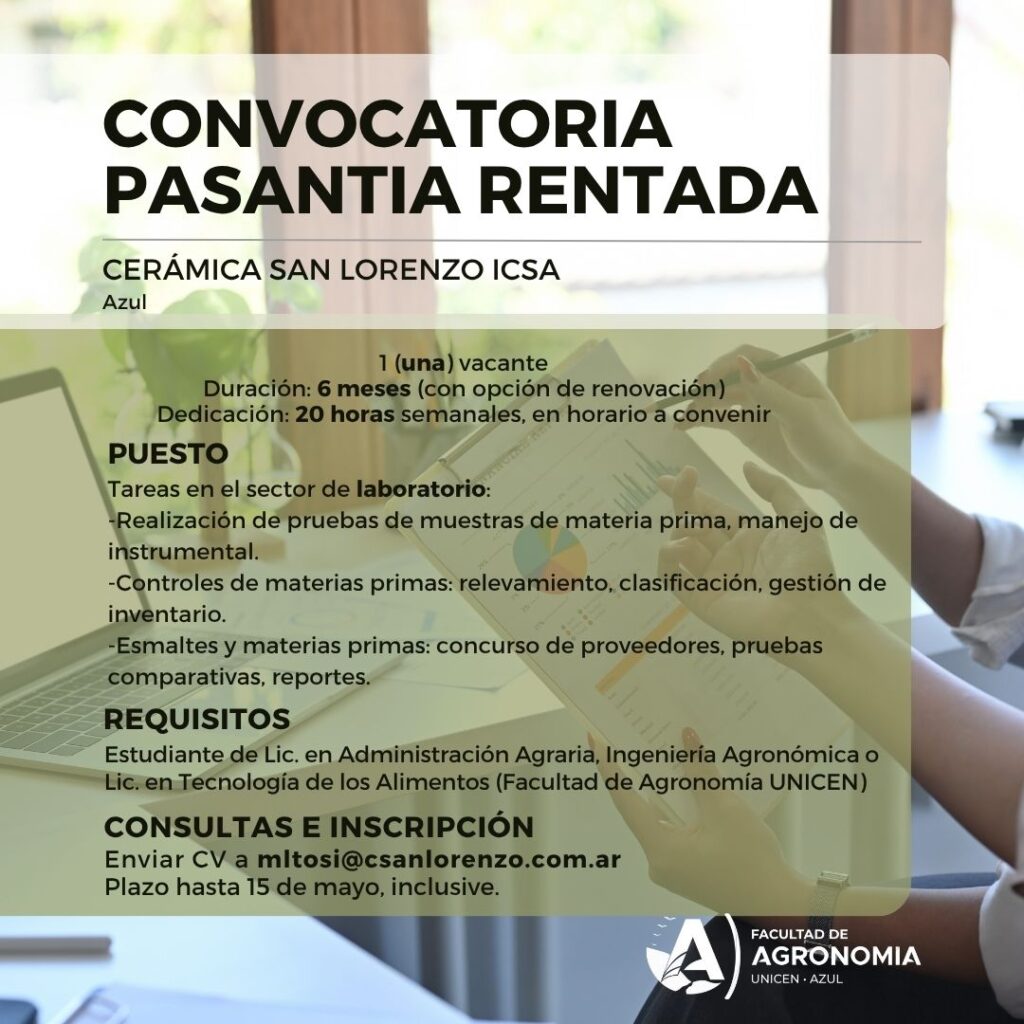 Selección por antecedentes Selección por antecedentes La Facultad de Agronomía UNICEN llama a una selección por antecedentes para un cargo de Responsable de la Chacra Experimental (cargo…