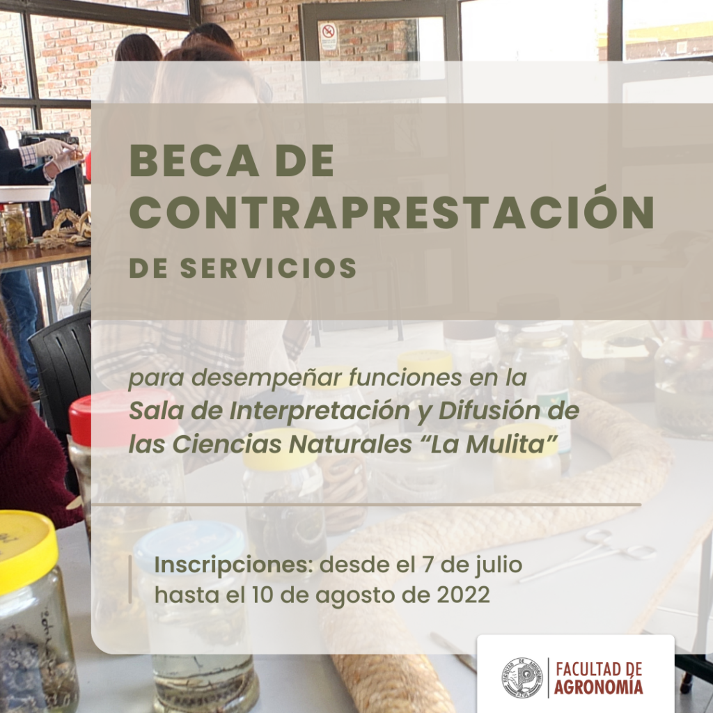 Beca de contraprestación para alumnos Hasta el 10 de agosto, se encuentra abierta la inscripción a una Beca de Contraprestación de Servicios para desempeñar funciones en la Sala de…