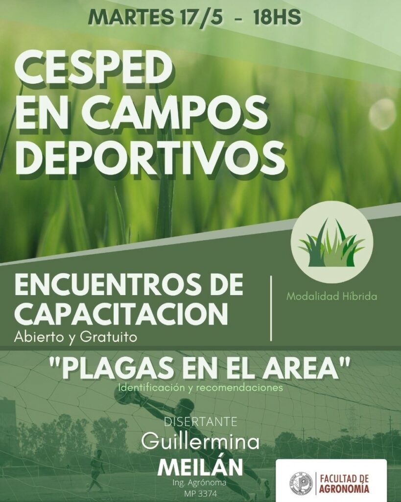 Césped en campos deportivos – 2do encuentro El día martes 17 de mayo continuará el ciclo de capacitación “Césped en campos deportivos”, con la disertación de la Ing. Agr. Guillermina Meilán.Recordamos…