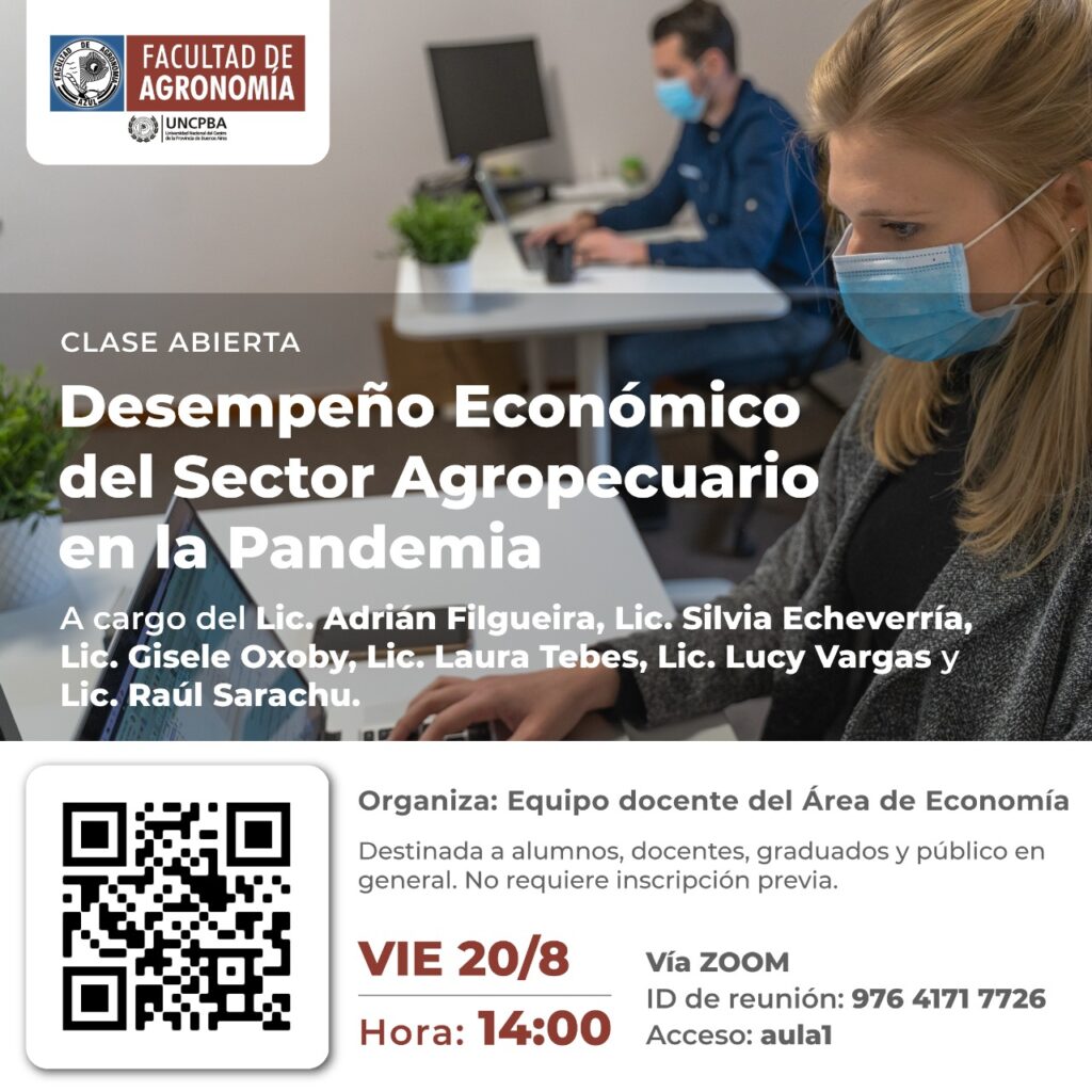 Clase Abierta de Economía Agraria 👨🏻💻“Desempeño Económico del Sector Agropecuario en la Pandemia”👩🏻💻Organizada por la Asignatura Economía Agraria de la Facultad de Agronomía UNICEN, el próximo viernes 20 de…