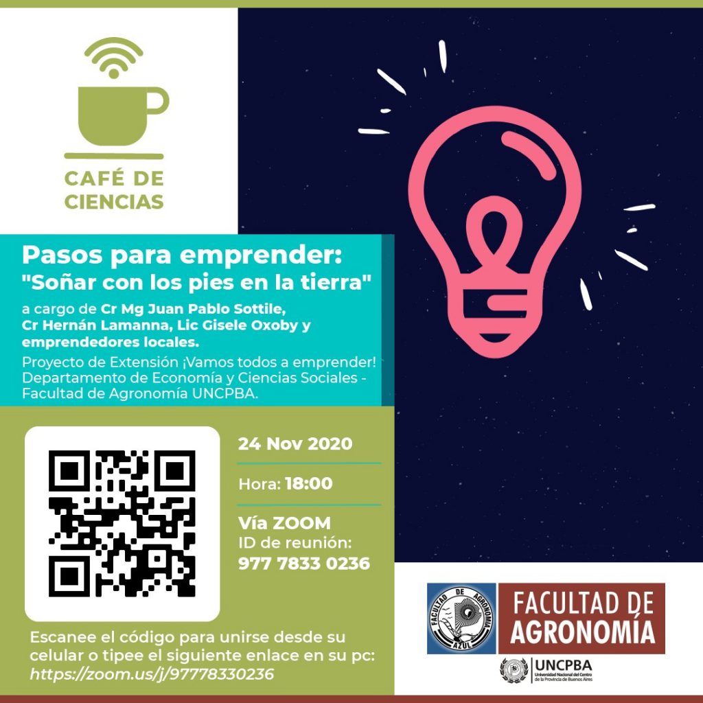 Café de Ciencias “Pasos para emprender: Soñar con los pies en la tierra” Organizada por el ciclo virtual Café de Ciencias de la Facultad de Agronomía UNCPBA, el próximo martes 24 de noviembre se llevará a cabo…