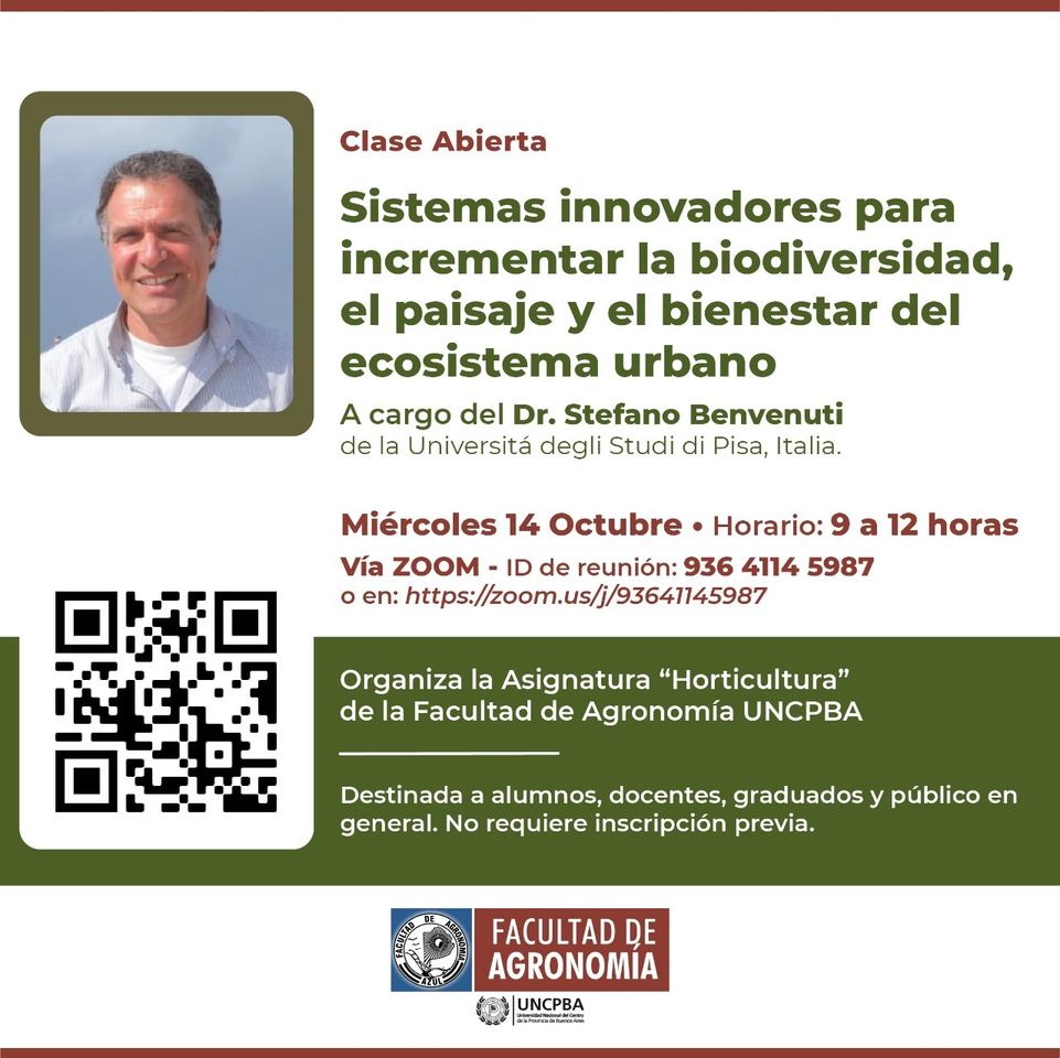 Sistemas innovadores para incrementar la biodiversidad, el paisaje y el bienestar del ecosistema urbano. Clase Abierta en la Facultad de Agronomía Organizada por la Asignatura Horticultura de la Facultad de Agronomía UNPCBA, el 14 de octubre se llevará…
