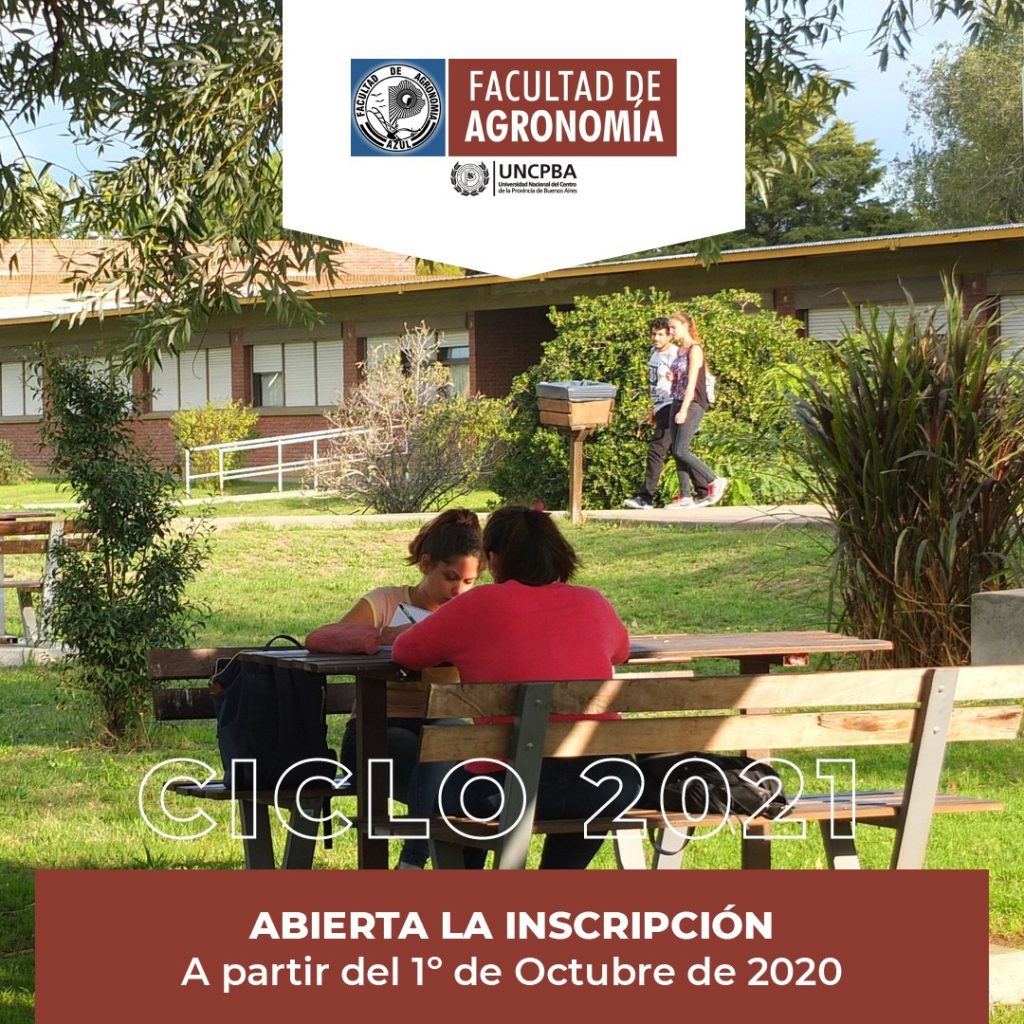 Inscripción abierta- Ingreso 2021 Recordamos que desde el 1 de octubre se encuentra abierta la inscripción a todas las carreras de grado de la Facultad de Agronomía UNCPBA…