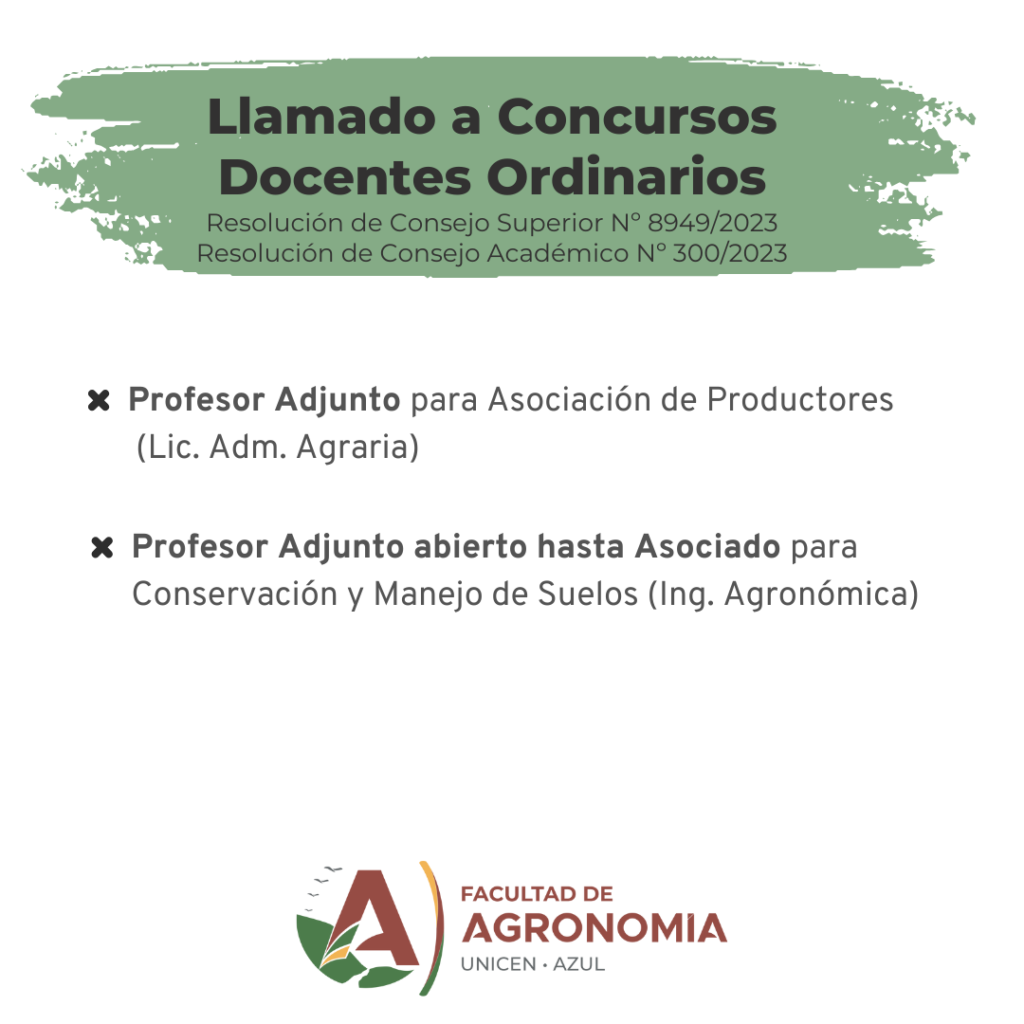 Concursos Docentes Se encuentra abierta la inscripción para Concursos Docentes Ordinarios, hasta el 06/03/2024, para cubrir los siguientes cargos: -Profesor Adjunto para Asociación de Productores (Lic….
