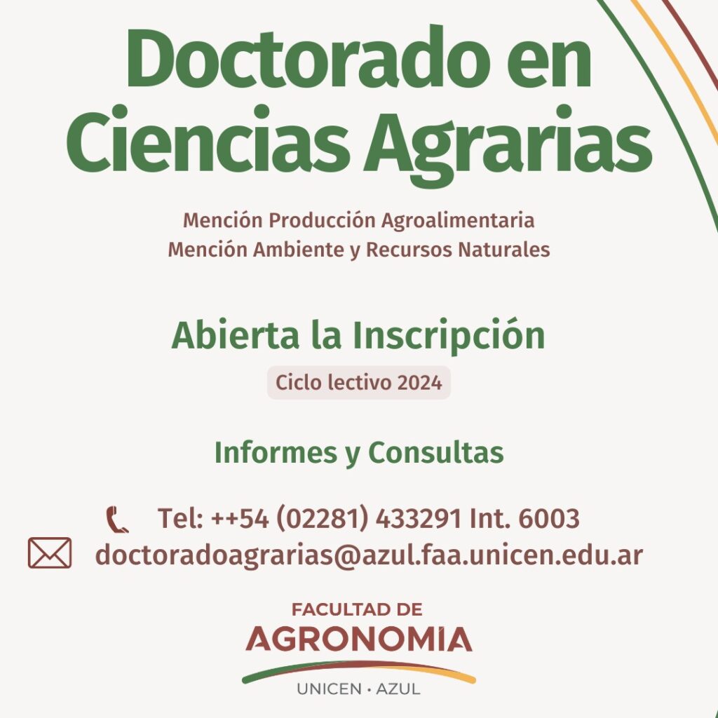 DOCTORADO EN CIENCIAS AGRARIAS Mención en Producción Agroalimentaria Mención Ambiente y Recursos Naturales Se encuentra abierta la inscripción para el ciclo lectivo 2024 al Doctorado en Ciencias Agrarias…