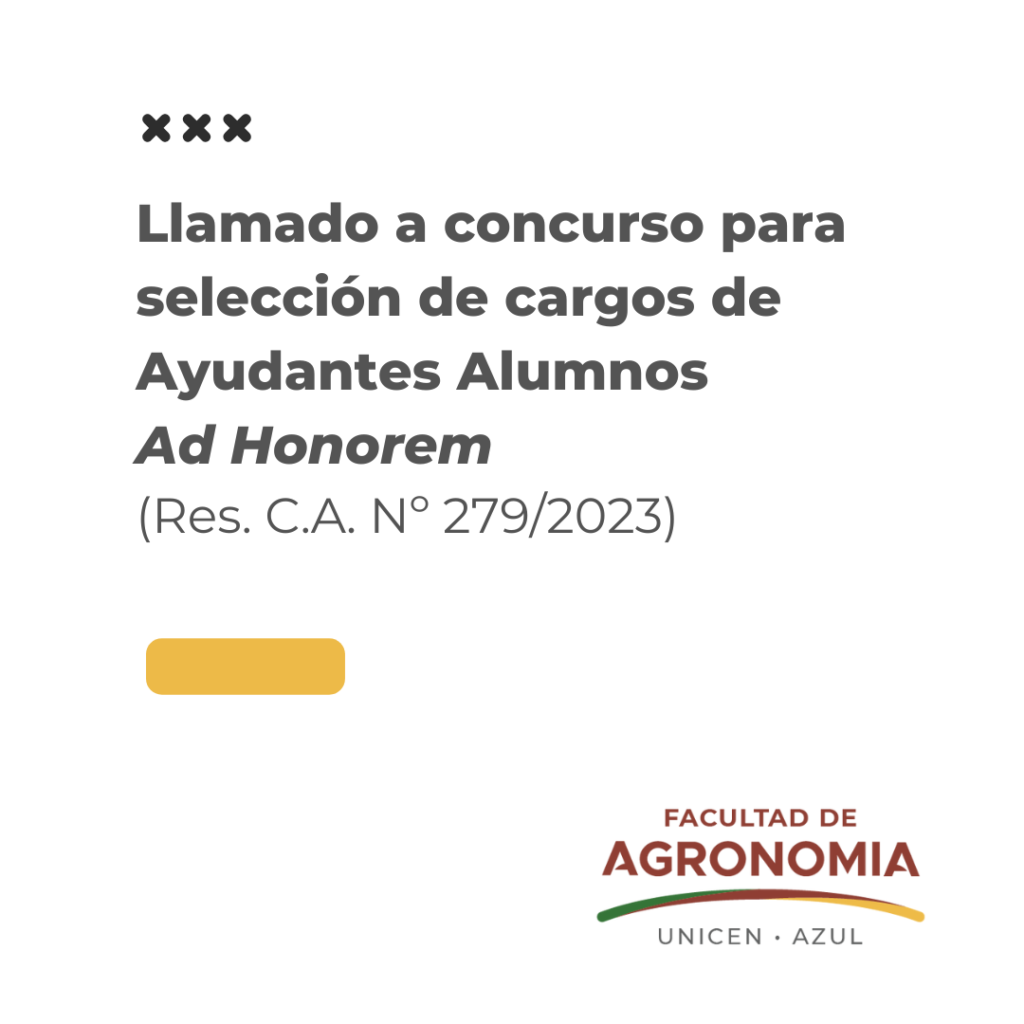 Convocatoria:Ayudantes Alumnos Ad-Honorem Hasta el 6 de marzo se encuentra abierta la convocatoria para la cobertura de cargos de Ayudantes Alumnos Ad-Honorem para las siguientes asignaturas: INTRODUCCIÓN…