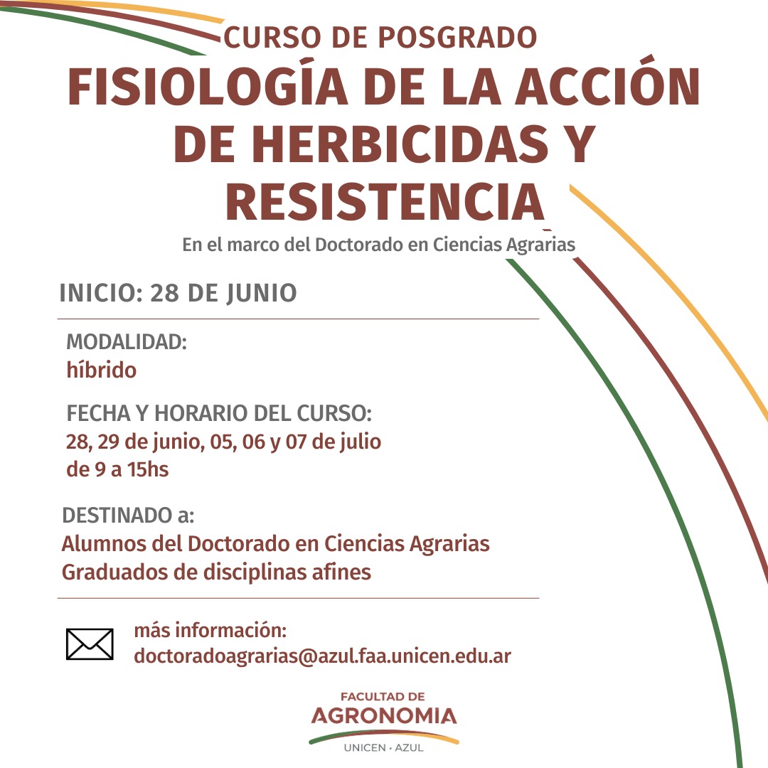 Nuevo Curso de Posgrado “Fisiología de la acción de herbicidas y resistencia” El día 28 de junio iniciará un nuevo Curso de Posgrado, en el marco del trayecto…